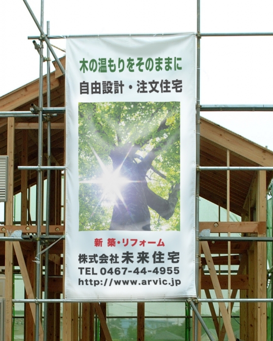 サイズ1800X3600の足場幕設置例です。